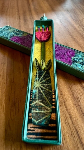 This set of earrings is part of my 2026 earring challenge: I am making a new handmade pair of paper earrings for every day of the year, and I am posting my progress on my Instagram. If you would like to see some video close-ups of this pair of earrings, you can find it here: Day 14 Earrings Video