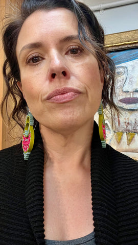 This set of earrings is part of my 2026 earring challenge: I am making a new handmade pair of paper earrings for every day of the year, and I am posting my progress on my Instagram. If you would like to see some video close-ups of this pair of earrings, you can find it here: Day 29 Earrings Video